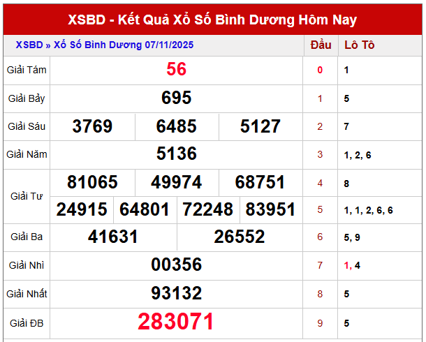 ⭐ Giải đặc biệt Bình Dương: 69 - 15