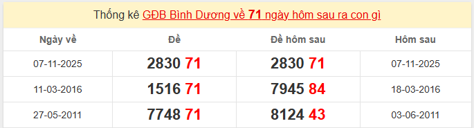 Thống kê GĐB Bình Dương về 71 ngày hôm sau ra con gì