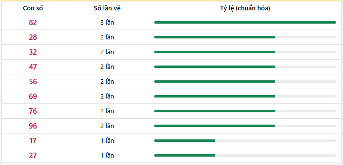 - 10 cặp số xuất hiện nhiều nhất trong vòng 30 lần quay xổ số tỉnh Bình Dương