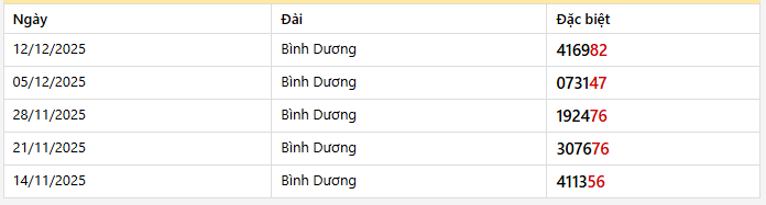 - Thống kê giải đặc biệt tỉnh Bình Dương trong 5 kỳ quay gần nhất