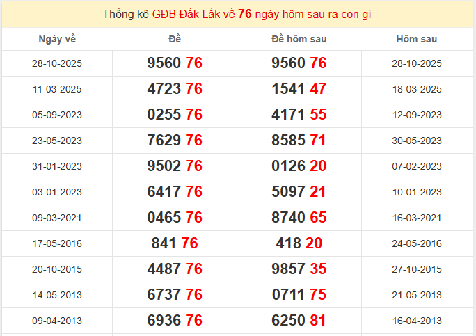 Đặc biệt về 76 ngày mai ra con gì? Xem tần suất ĐB hôm sau