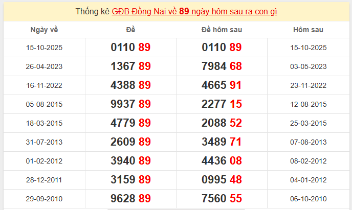 Thống kê GĐB Đồng Nai về 89 ngày hôm sau ra con gì