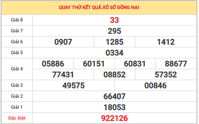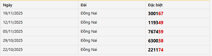 Thống kê giải đặc biệt tỉnh Đồng Nai trong 5 kỳ quay gần nhất