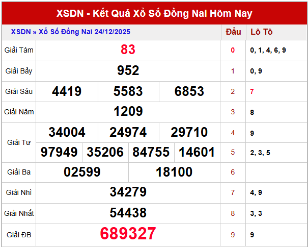 Dựa trên thống kê kết quả XSDN 30 ngày quay gần nhất, tần suất về số và xu hướng biến động đã được phân tích kỹ lưỡng nhằm mang đến cho bạn thêm thông tin tham khảo chất lượng. Ngay bên dưới sẽ là nhận định dự đoán xổ số Đồng Nai ngày 31/12/2025 được chắt lọc từ những dữ liệu đó giúp bạn cân nhắc sáng suốt hơn khi lựa chọn!