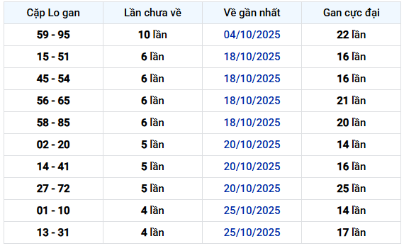 Thống kê dưới đây cập nhật kết quả xổ số Hồ Chí Minh mới nhất, bao gồm các cặp số ít về trong thời gian gần đây cùng những con số vừa xuất hiện. Việc theo dõi dữ liệu này giúp bạn đánh giá xu hướng chung và hỗ trợ lựa chọn con số có khả năng cao ở kỳ tới.