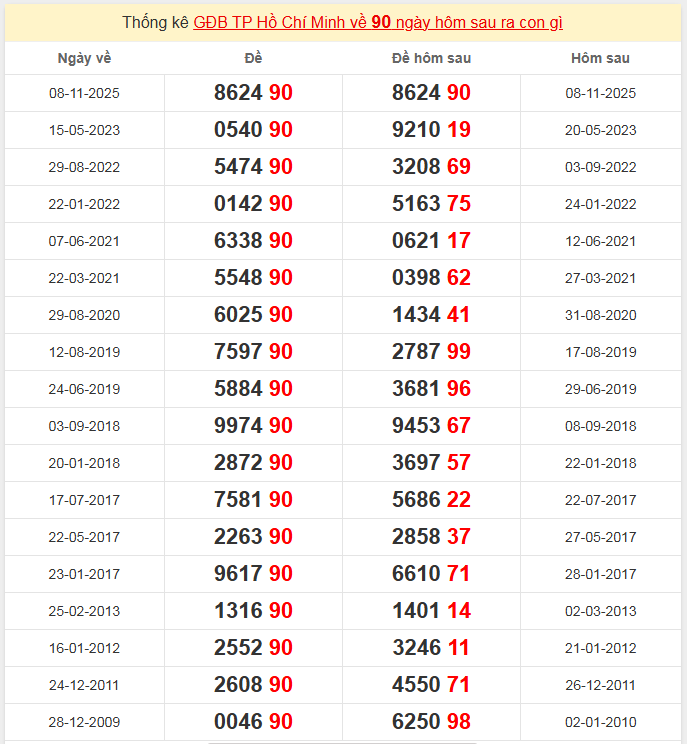 Đặc biệt về 90 ngày mai ra con gì? Xem tần suất ĐB hôm sau