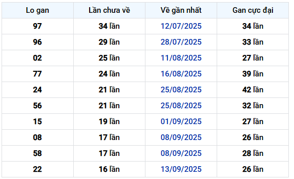 Dựa trên bảng thống kê Loto gan của XSHCM 90 ngày, ta có thể nhận thấy một số điểm đáng chú ý như sau: