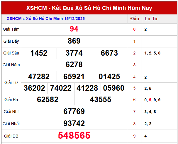 Dự đoán xổ số Hồ Chí Minh 20/12/2025 mang đến những con số được đánh giá cao, giúp người chơi có thêm cơ hội chọn lựa chính xác. Hãy cùng khám phá những lựa chọn số hấp dẫn nhất cho ngày hôm nay.