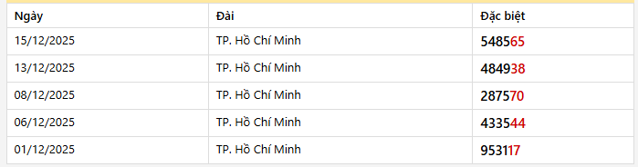 - Thống kê giải đặc biệt tỉnh Hồ Chí Minh trong 5 kỳ quay gần nhất