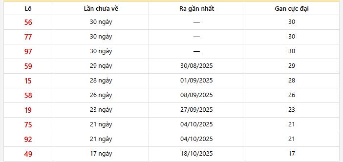 ⭐️ Những cặp số lô gan XSHCM lâu xuất hiện nhất: Lô gan 56 lâu ra nhất (30 ngày)