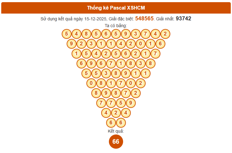 Phương pháp Pascal hiện đang được rất nhiều người chơi tin tưởng khi soi cầu xổ số Hồ Chí Minh. Dựa vào bảng Pascal hôm nay, bạn hoàn toàn có thể xác định được những cặp số sáng giá cho kỳ quay thưởng ngày 20/12/2025. Thông tin chi tiết sẽ được cập nhật ngay sau đây.