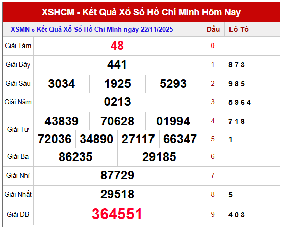 Tham khảo dữ liệu XSHCM trong các kỳ gần nhất cùng với bảng thống kê, bạn có thể nâng cao khả năng đưa ra con số dự đoán chính xác cho ngày 24/11/2025.