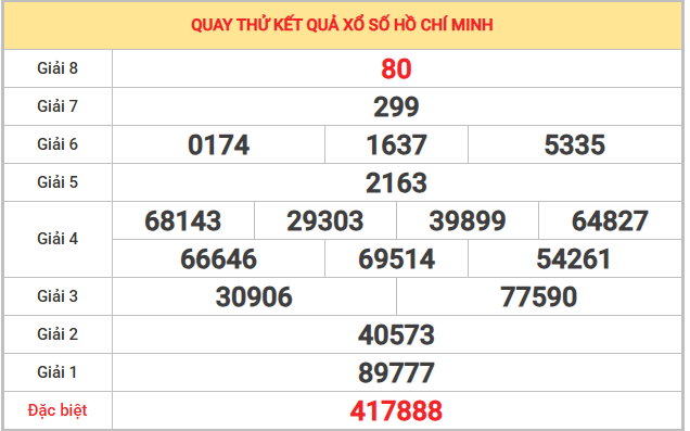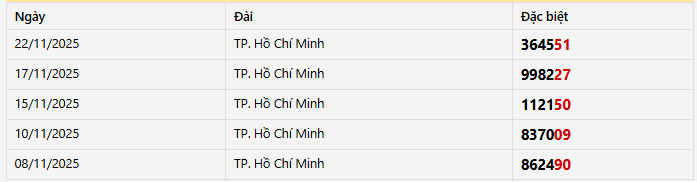 Thống kê giải đặc biệt tỉnh Hồ Chí Minh trong 5 kỳ quay gần nhất