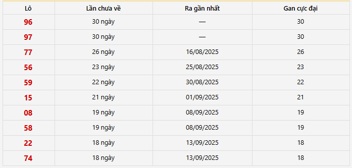 ⭐️ Những cặp số lô gan XSHCM lâu xuất hiện nhất: Lô gan 96 lâu ra nhất (30 ngày)