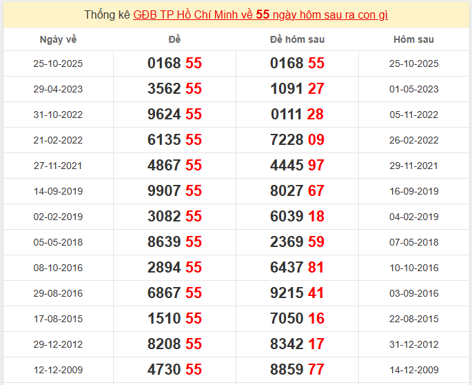 Đặc biệt về 55 ngày mai ra con gì? Xem tần suất ĐB hôm sau