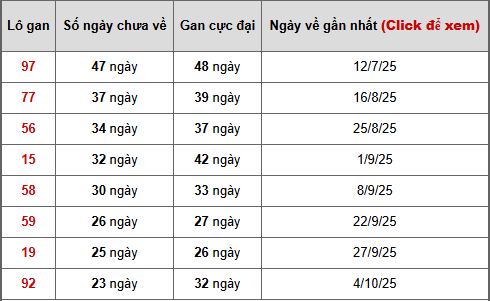 Lô 97 – 47 ngày → dẫn đầu bảng gan, chỉ cách mức gan cực đại 1 ngày → khả năng cao sắp hồi phục, cần tập trung theo dõi.