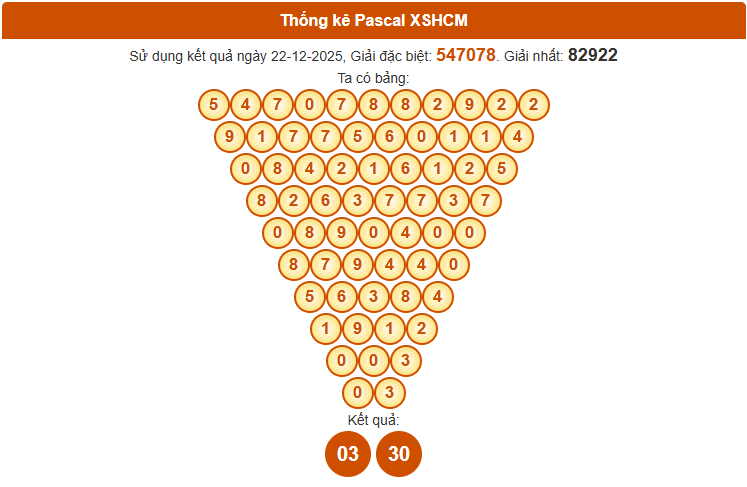 Phương pháp Pascal đang được nhiều cao thủ lựa chọn để dự đoán xổ số Hồ Chí Minh ngày 27/12/2025 chính xác. Thông qua bảng Pascal được cập nhật hôm nay, người chơi có thể nhanh chóng nhận diện những cặp số sáng giá cho kỳ quay ngày 27/12. Mọi thông tin chi tiết mời bạn theo dõi ngay bên dưới.