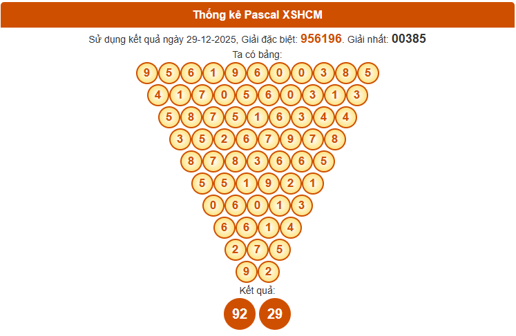 Phương pháp Pascal hiện đang được nhiều người có kinh nghiệm áp dụng trong quá trình dự đoán xổ số Hồ Chí Minh ngày 3 tháng 1 năm 2026. Dựa vào bảng Pascal cập nhật mới nhất, người chơi có thể dễ dàng nhận ra những cặp số tiềm năng cho kỳ quay ngày 3/1. Chi tiết sẽ được trình bày ngay sau đây.