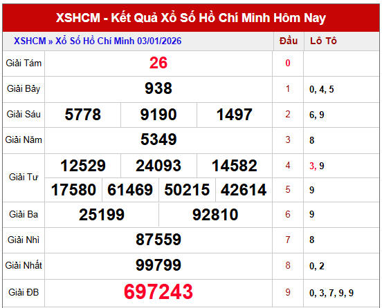 Tổng hợp dữ liệu XSHCM 30 ngày quay gần nhất cho thấy những biến động đáng chú ý về tần suất xuất hiện của các con số. Từ nền tảng đó, phần dự đoán XS Hồ Chí Minh ngày 5/1/2026 dưới đây được chọn lọc kỹ, mang đến nguồn tham khảo đáng tin cậy để bạn cân nhắc.