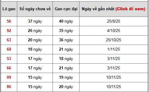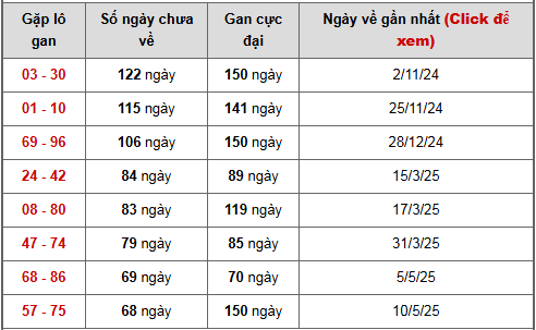 - Bảng thống kê lô gan Hồ Chí Minh lâu chưa ra tính đến ngày 5/1/2025