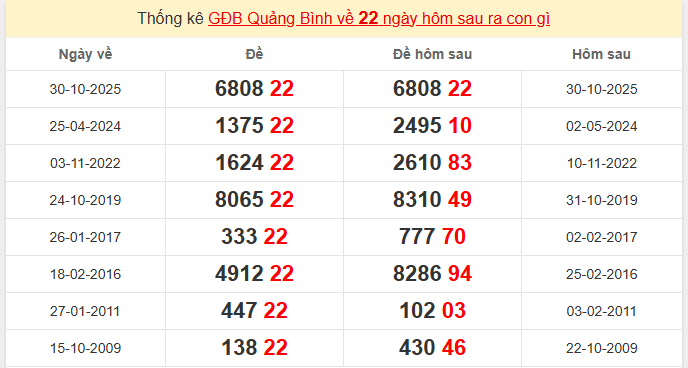 Thống kê GĐB Quảng Bỉnh về 22 ngày hôm sau ra con gì
