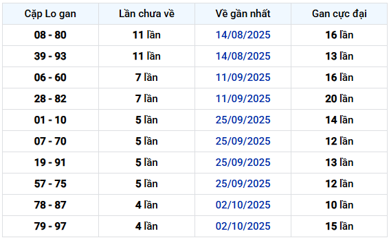 Dựa trên bảng thống kê Loto gan của XSQB 90 ngày, có thể thấy một số cặp số đã lâu chưa xuất hiện, cho thấy mức độ “gan” khá cao.