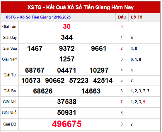 Tham khảo dự đoán xổ số Tiền Giang hôm nay với các con số được tổng hợp và phân tích từ giải 8, số đầu – đuôi giải đặc biệt, kết quả XSTG 30 ngày cùng lô tô 2 số, hoàn toàn miễn phí và có khả năng xuất hiện cao.