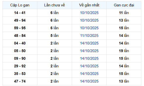 Qua bảng thống kê cặp Loto gan Xổ số Tiền Giang, có thể thấy một số cặp số đang trong giai đoạn chưa xuất hiện khá lâu, phản ánh chu kỳ gan tương đối cao.