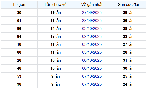Tổng thể, bảng dữ liệu này cung cấp cái nhìn tổng quan về chu kỳ và tần suất xuất hiện của các cặp số tại Xổ số Tiền Giang, giúp người quan tâm có thêm thông tin tham khảo khi theo dõi kết quả trong các kỳ quay sắp tới.
