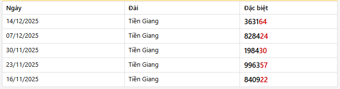 - Thống kê giải đặc biệt tỉnh Tiền Giang trong 5 kỳ quay gần nhất