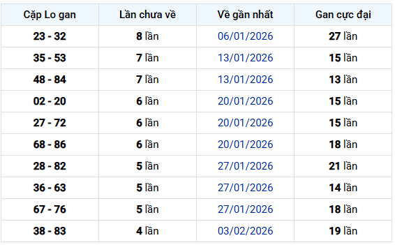 Dựa trên bảng thống kê cặp lô gan hiện tại, có thể thấy mặt bằng gan đang ở mức trung bình – chưa xuất hiện cặp gan quá dài, nhưng vẫn có một vài tín hiệu đáng chú ý cho anh em soi cầu khi tham khảo soi cầu XSDLK ngày 10/3/2026.
