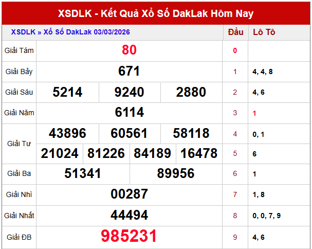 Dự đoán XSDLK ngày 10/3/2026 dựa trên dữ liệu các kỳ quay gần nhất đang cho thấy nhiều cặp số nổi bật. Phân tích soi cầu xổ số DAKLAK ngày mùng 10 tháng 3 năm 2026 hé lộ loạt tín hiệu sáng, đáng để tham khảo trước giờ quay.