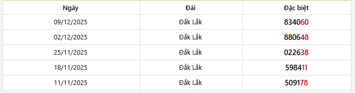 Thống kê giải đặc biệt tỉnh DAKLAK trong 5 kỳ quay gần nhất