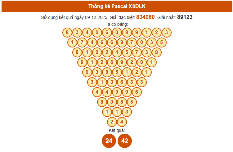 Phương pháp Pascal là công cụ được nhiều người chơi tin dùng khi nghiên cứu kết quả XS Đắk Lắk. Dựa trên bảng Pascal hôm nay, bạn sẽ dễ dàng phát hiện các cặp số nổi bật cho kỳ quay 16/12/2025. Xem chi tiết ngay bên dưới.