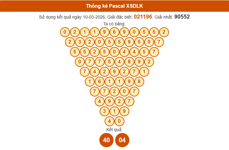 Phương pháp Pascal là một trong những cách soi cầu được nhiều người áp dụng khi phân tích XS DAKLAK ngày 17/3/2026. Với cấu trúc logic đặc trưng của bảng Pascal, những cặp số tiềm năng có thể được nhận diện nhanh chóng từ dữ liệu kết quả gần đây.