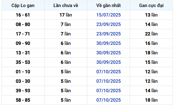 Tóm lại, bảng cho thấy tần suất và thời điểm gần nhất xuất hiện của các cặp số, giúp nhận diện những cặp số lâu chưa xuất hiện và những cặp từng có chuỗi xuất hiện dài.