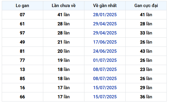 Bảng thống kê XSDLK 90 ngày cho thấy một số con số chưa xuất hiện trong nhiều kỳ gần đây, thể hiện “thời gian nghỉ” dài so với các con số khác.