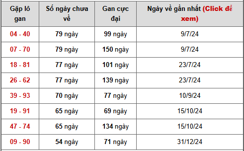 - Bảng thống kê lô gan DAKLAK lâu chưa ra tính đến ngày 20/1/2025