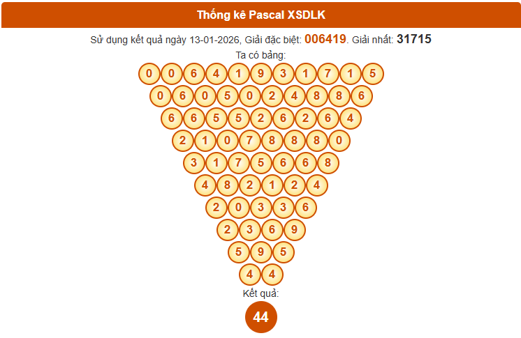 Phương pháp Pascal đã được giới chuyên môn đánh giá cao và áp dụng rộng rãi trong dự đoán xổ số DAKLAK ngày 20/1/2026. Với bảng Pascal mới nhất, việc lọc ra các cặp số sáng giá trở nên nhanh chóng, logic và đáng tin cậy hơn.
