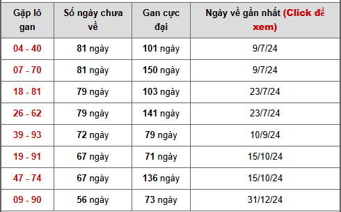 🔹04 – 40 và 07 – 70 đang dẫn đầu bảng khi cùng chạm mốc 81 ngày chưa về. Đáng chú ý, cả hai cặp đều còn khoảng cách khá xa so với gan cực đại (101 và 150 ngày), cho thấy trạng thái gan sâu kéo dài, phản ánh chu kỳ tích lũy bền bỉ và khả năng xuất hiện trở lại luôn được đặt trong vùng theo dõi cao trong các phân tích soi cầu XSDLK 3/2/2026.