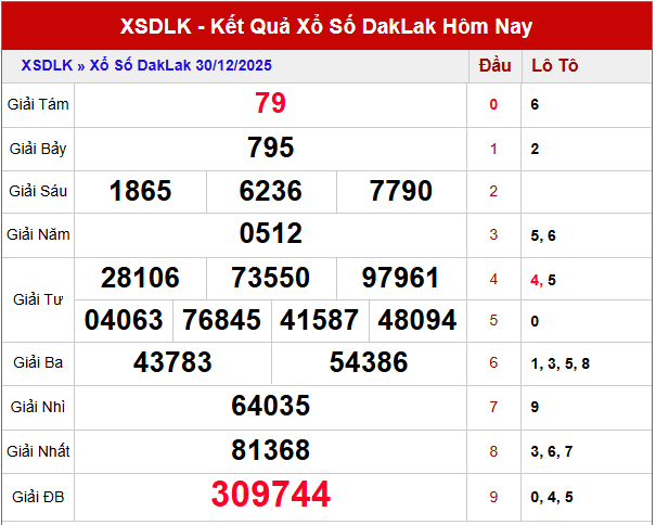 Tổng hợp dữ liệu XSDLK 30 ngày quay gần nhất cho thấy những biến động đáng chú ý về tần suất xuất hiện của các con số. Từ nền tảng đó, phần dự đoán XS DAKLAK ngày 6/1/2026 dưới đây được chọn lọc kỹ, mang đến nguồn tham khảo đáng tin cậy để bạn cân nhắc.