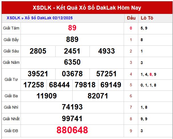 Xem kết quả XSDLK mới nhất kết hợp với dữ liệu thống kê giúp bạn có thêm căn cứ để chọn ra con số hứa hẹn cho ngày 9/12/2025.