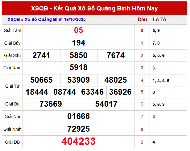 Trên đây là toàn bộ thông tin về dự đoán xổ số Quảng Bình 23/10/2025 được xosodaiviet.mobi tổng hợp từ dữ liệu thực tế và các chỉ số thống kê đáng tin cậy. Hy vọng nội dung này sẽ giúp bạn có thêm cơ sở lựa chọn những con số may mắn và nắm bắt cơ hội tốt nhất trong kỳ quay thưởng sắp tới.