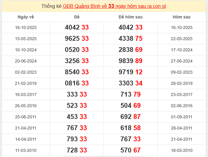 Thống kê GĐB Quảng Bình về 33 ngày hôm sau ra con gì