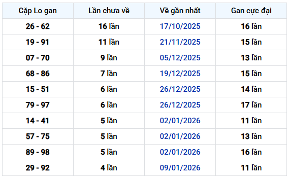 🔹 26 – 62: Đang gan 16 lần, chạm đúng mốc gan cực đại. Cặp lô dạng này thường rơi vào trạng thái “quá tải chu kỳ”, dễ bật lại sau giai đoạn tích tụ dài, đặc biệt đáng chú ý khi soi cầu XSBD ngày 13/2/2026.