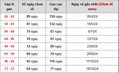 - Bảng cặp số lô gan XSBD ngày 16/1/2026
