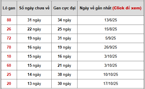 - Bảng thống kê lô gan Bình Dương lâu chưa ra tính đến ngày 23/1/2025