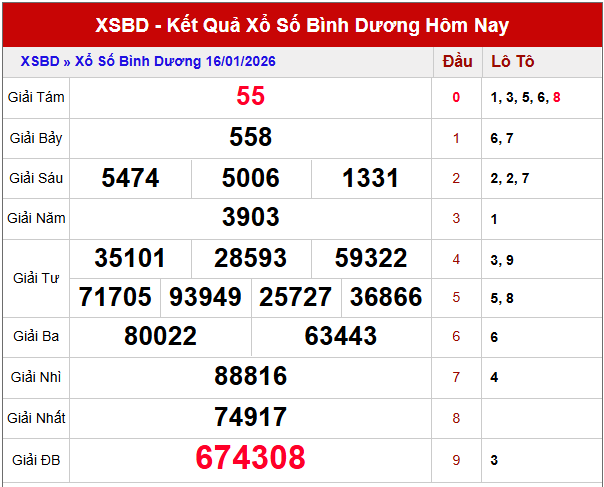Từ dữ liệu XS Bình Dương đã công bố kết hợp phân tích chuyên sâu theo nhiều chu kỳ, các bộ số tiềm năng dần được hé lộ, mang đến những gợi ý đáng chú ý cho dự đoán xổ số Bình Dương ngày 23 tháng 1 năm 2026.