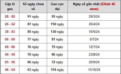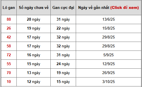 - Bảng thống kê lô gan Bình Dương lâu chưa ra tính đến ngày 2/1/2025