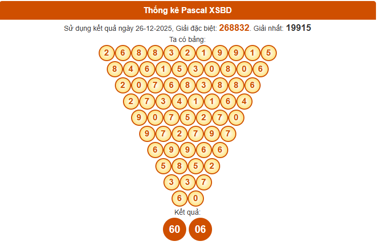 Phương pháp Pascal hiện đang được nhiều người có kinh nghiệm áp dụng trong quá trình dự đoán xổ số Bình Dương ngày 2 tháng 1 năm 2026. Dựa vào bảng Pascal cập nhật mới nhất, người chơi có thể dễ dàng nhận ra những cặp số tiềm năng cho kỳ quay ngày 2/1. Chi tiết sẽ được trình bày ngay sau đây.